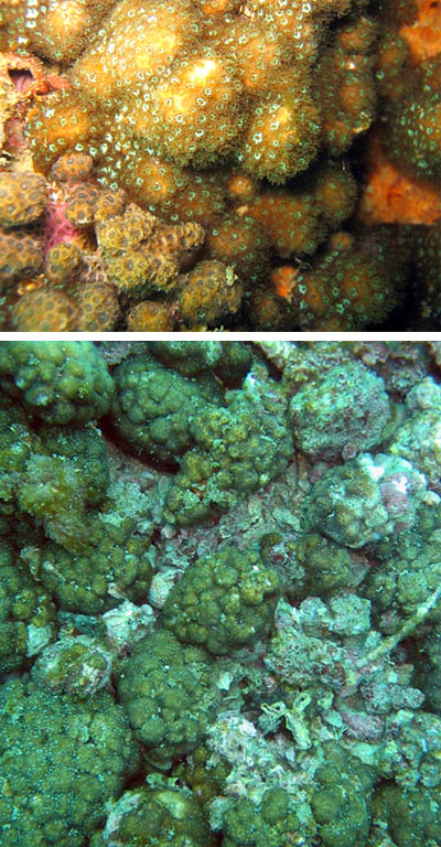 Ao contrário do que acontece em Abrolhos, a espécie de coral encontrada em Santa Catarina não forma recifes, mas um banco de colônias livres sobre o fundo do mar. São duas hipóteses que podem explicar o desenvolvimento desses corais em forma livre.